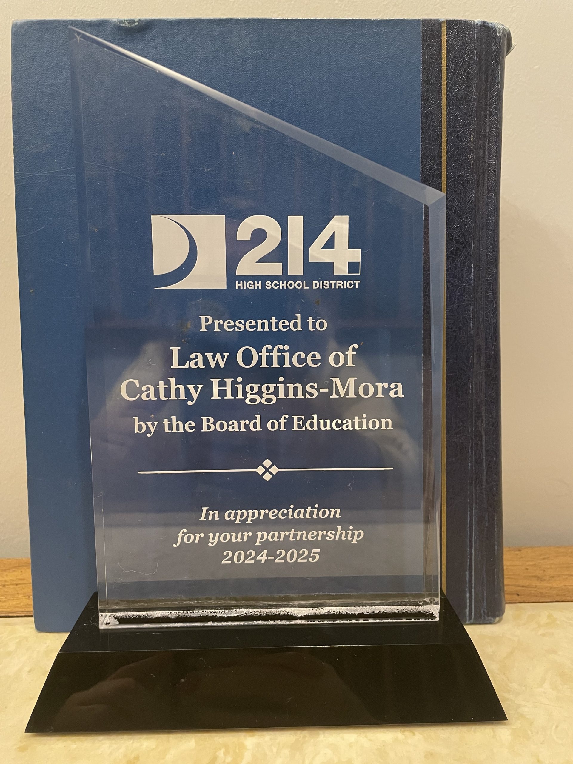 Cathy has been a proud host to her community’s high school district. For almost a decade, Cathy has hosted many interns and now high school apprenticeships at her office. We provide these young bright-minded high school students real life experience with immigration law. Recently Cathy was invited to a luncheon where she was awarded with an appreciation award for partnership with School District 214, which is one of the largest school districts in the State of Illinois.